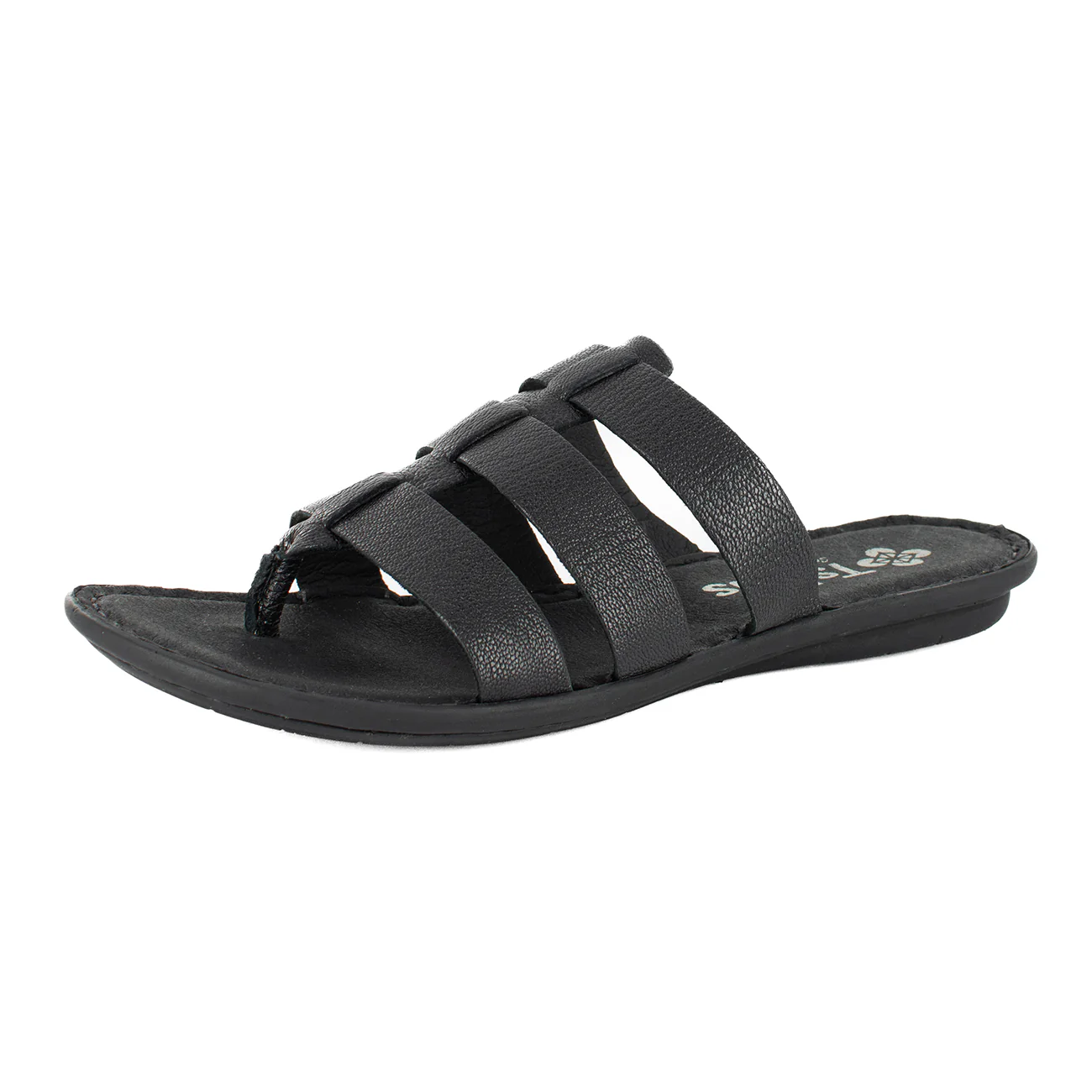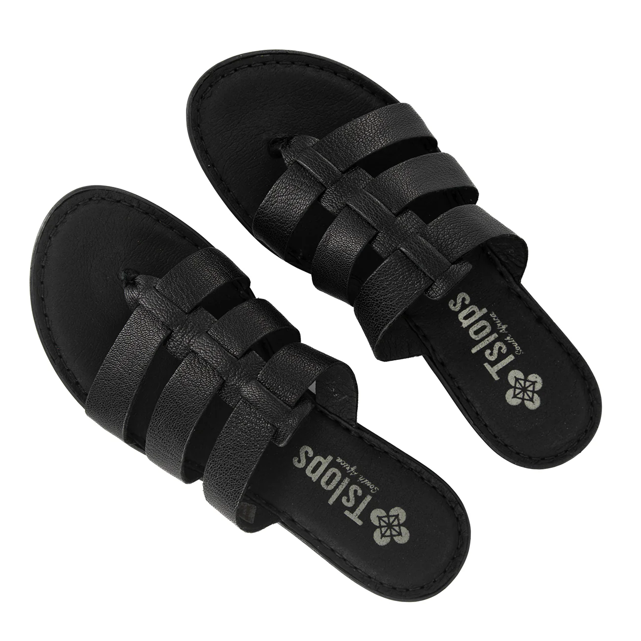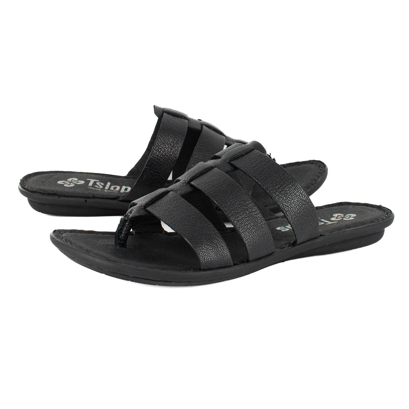Maroua : Ladies Leather Tslops Sandal in Black Cayak