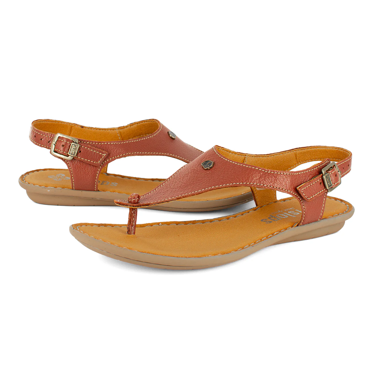 Khuthaza : Ladies Leather Tslops Sandal in Oak Cayak