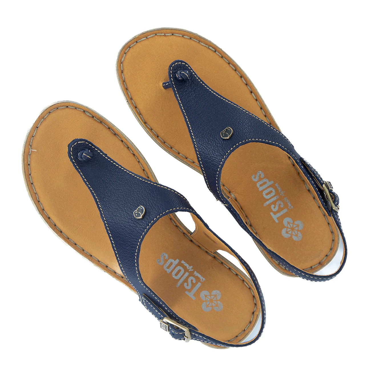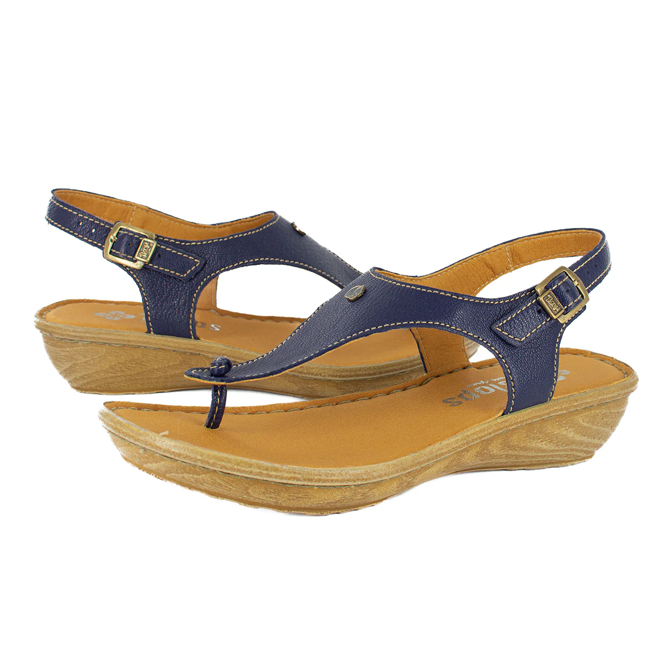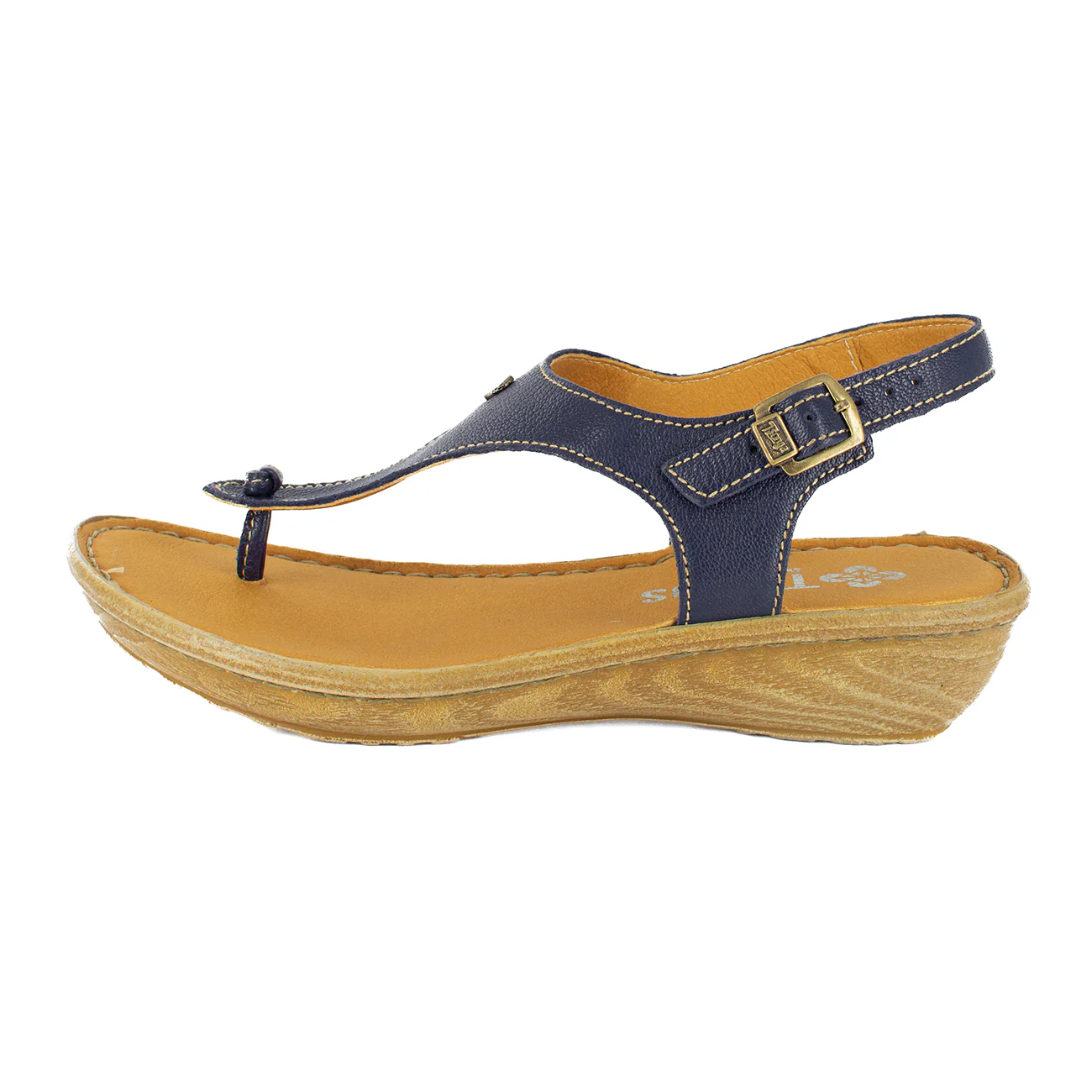 Barundi : Ladies Leather Tslops Wedge Heel Sandals in Marine Cayak