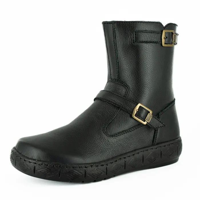 Ukumangala : Ladies 100% Wool-Lined Leather Short Boot in Black Delta