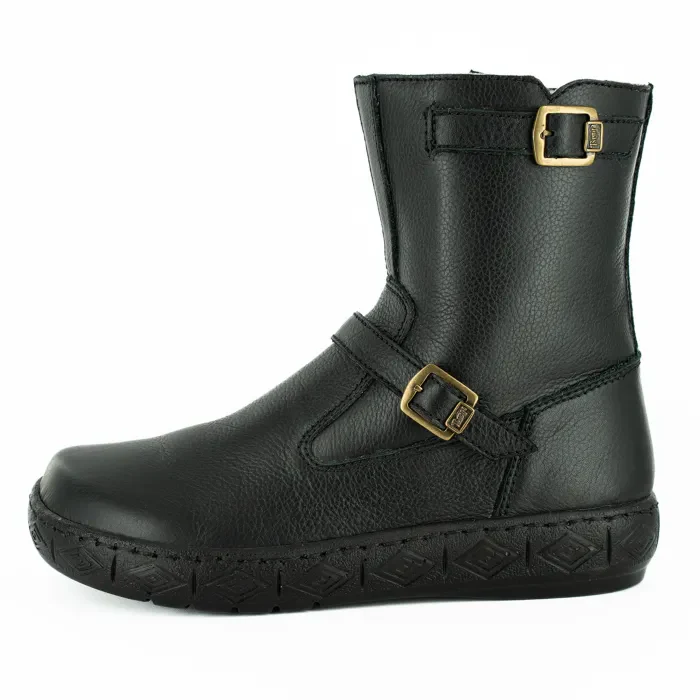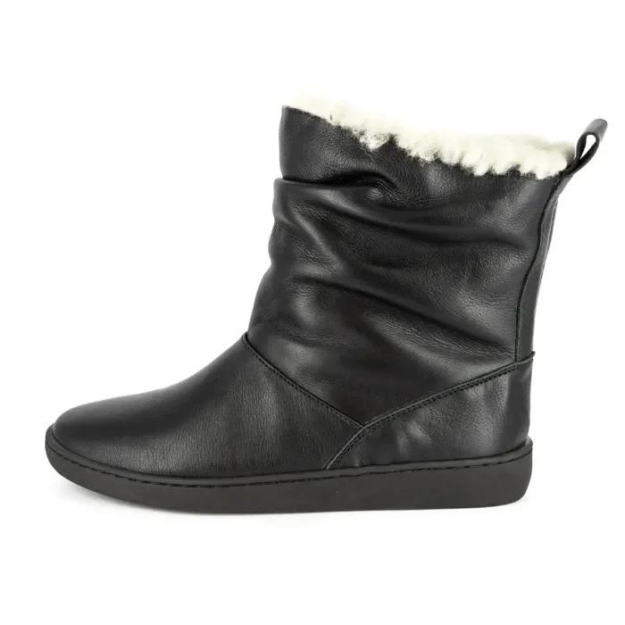Iholide : Ladies 100% Wool-Lined Leather Short Boot in Black Natan