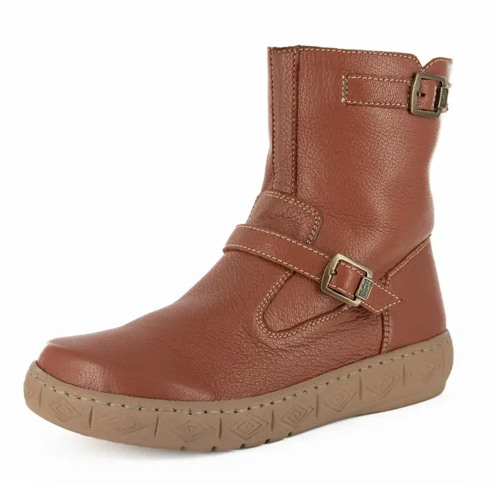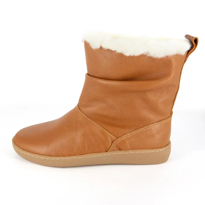 Iholide : Ladies 100% Wool-Lined Leather Short Boot in Oak
