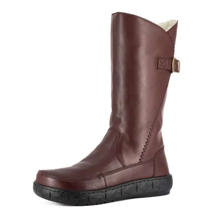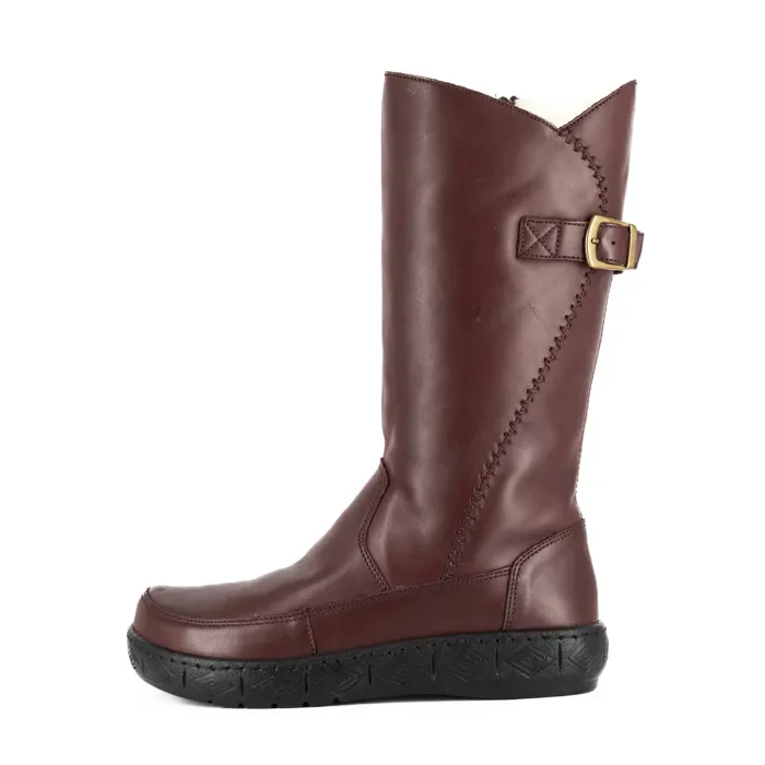 Maluju : Ladies 100% Wool-Lined Leather Mid-Calf Boot in Raisin