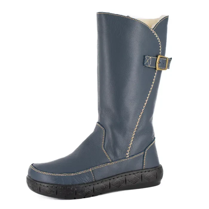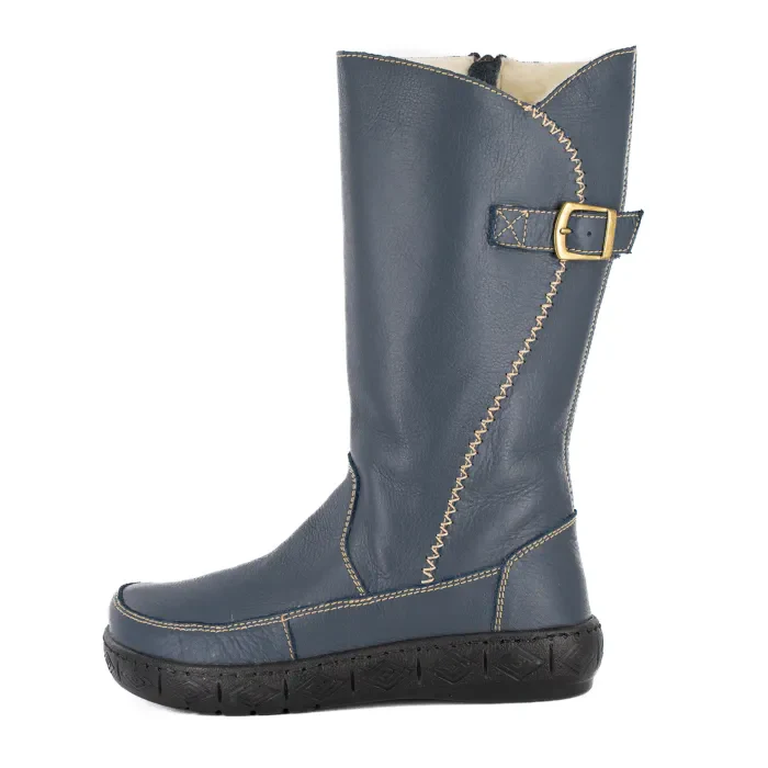 Maluju : Ladies 100% Wool-Lined Leather Mid-Calf Boot in Denim